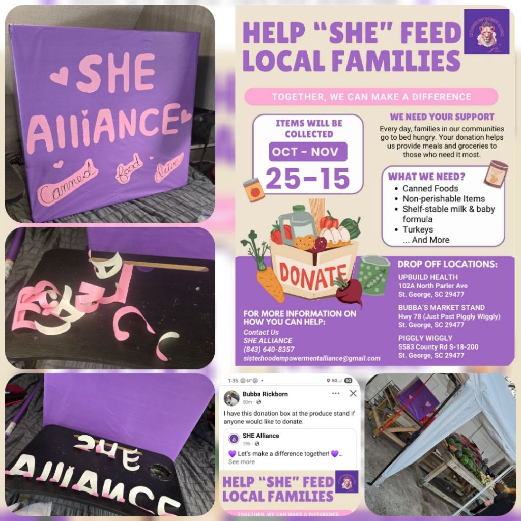 SHE Alliance is working on a community support endeavour – #CannedFoodDrive – locations for drop off as follows: